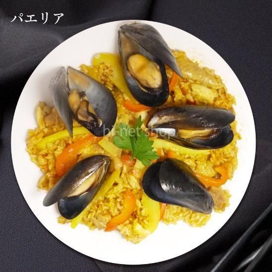 フライパンにアホエンガーリックを大さじ1〜2を入れ、玉ねぎ、パプリカと鶏もも肉、お好みでエビやイカなども入れ、下処理済みのムール貝も入れて炒めます。白ワインまたはお酒をふりかけ、蒸したら、その後、汁以外のお肉や、魚介類は一旦取り出します。(取り出すのが面倒な時は入れたままでもOKです)炒めた際にでた汁にトマト缶(半量)と水少量(味見しながら足してください)、コンソメ1個、サフランまたはターメリックを入れ、米2合を洗わずにいれ、炊いていきます。お米がちょうど良い硬さになってきたら、お肉やムール貝をフライパンに戻し、水気を飛ばすように炒めます。塩コショウをふりかけ、パセリなどを乗せたら完成です。これは炊飯器でもできますので、簡単です。ムール貝のダシが決め手です。